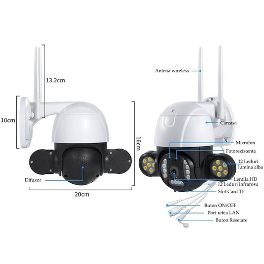 Video Surveillance Camera, 24 LEDs, 4MP, 2560 X 1440, Motion Sensor, PTZ, WIFI, Micro SD, Outdoor/Indoor