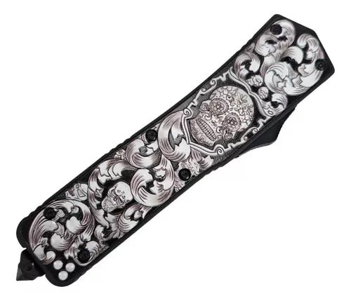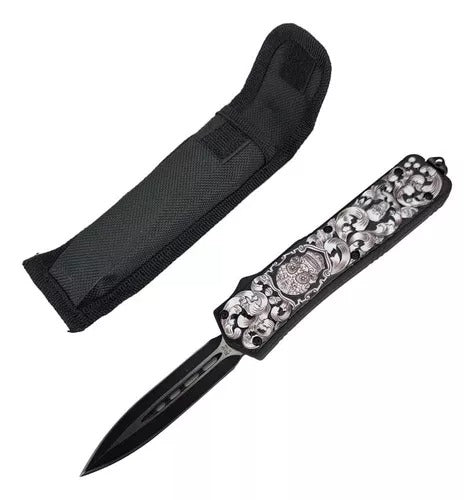 Automatic OTF Knife, Sheath Included, Metal Case, Very Durable, Skull Model