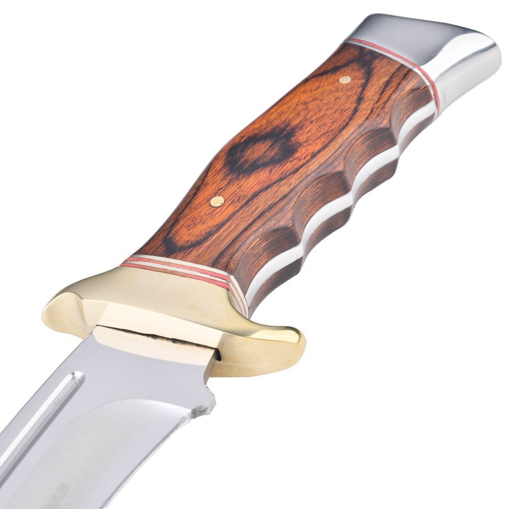With a 12.8 cm handle made of cast steel and colored wood, this knife not only looks impressive, but is also extremely comfortable to use. The ergonomic design of the handle reduces hand fatigue and provides a firm grip, so you can cut, slice and chop with ease. The perfectly balanced weight of 330 g makes every movement fluid and precise, giving you total control over the cooking process.