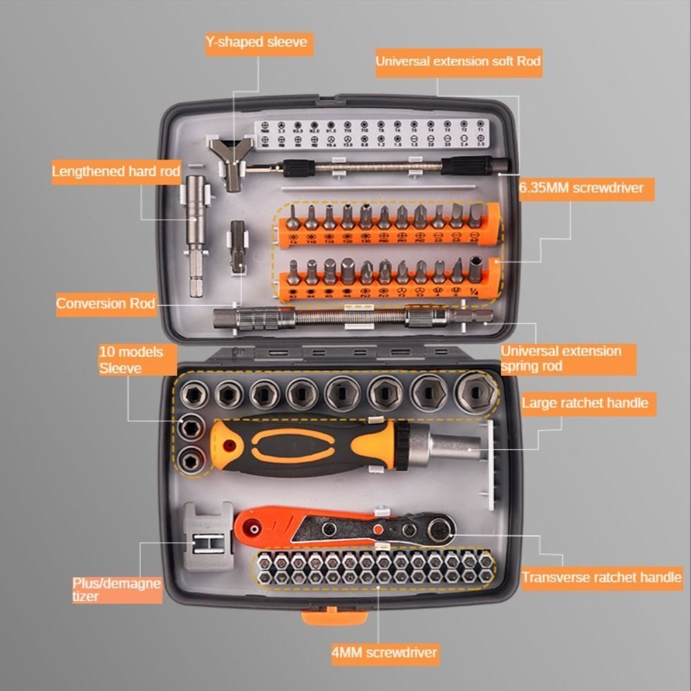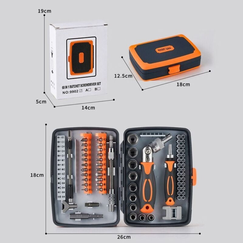 Trusa Tubulare și Biți cu Clichet, 68 Piese